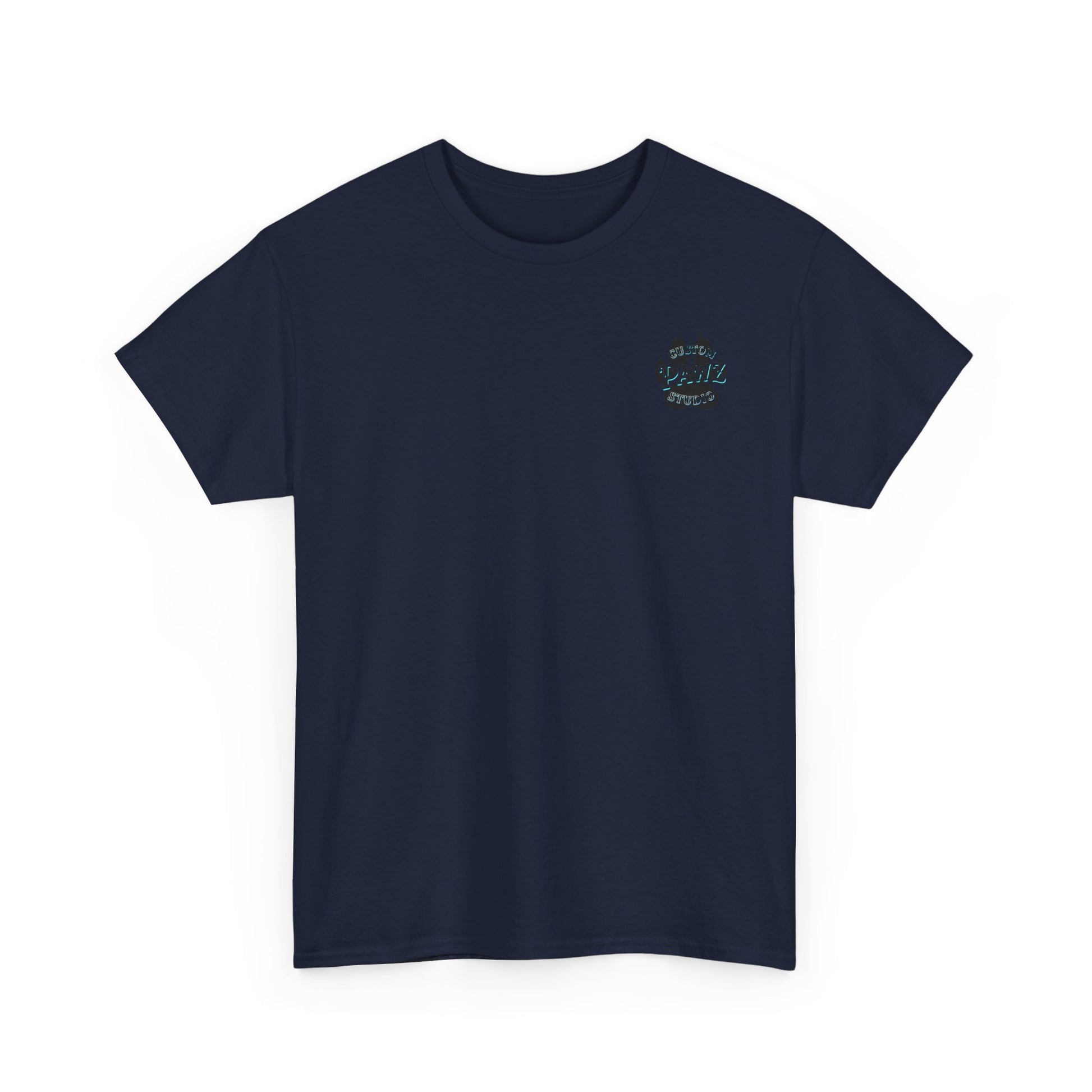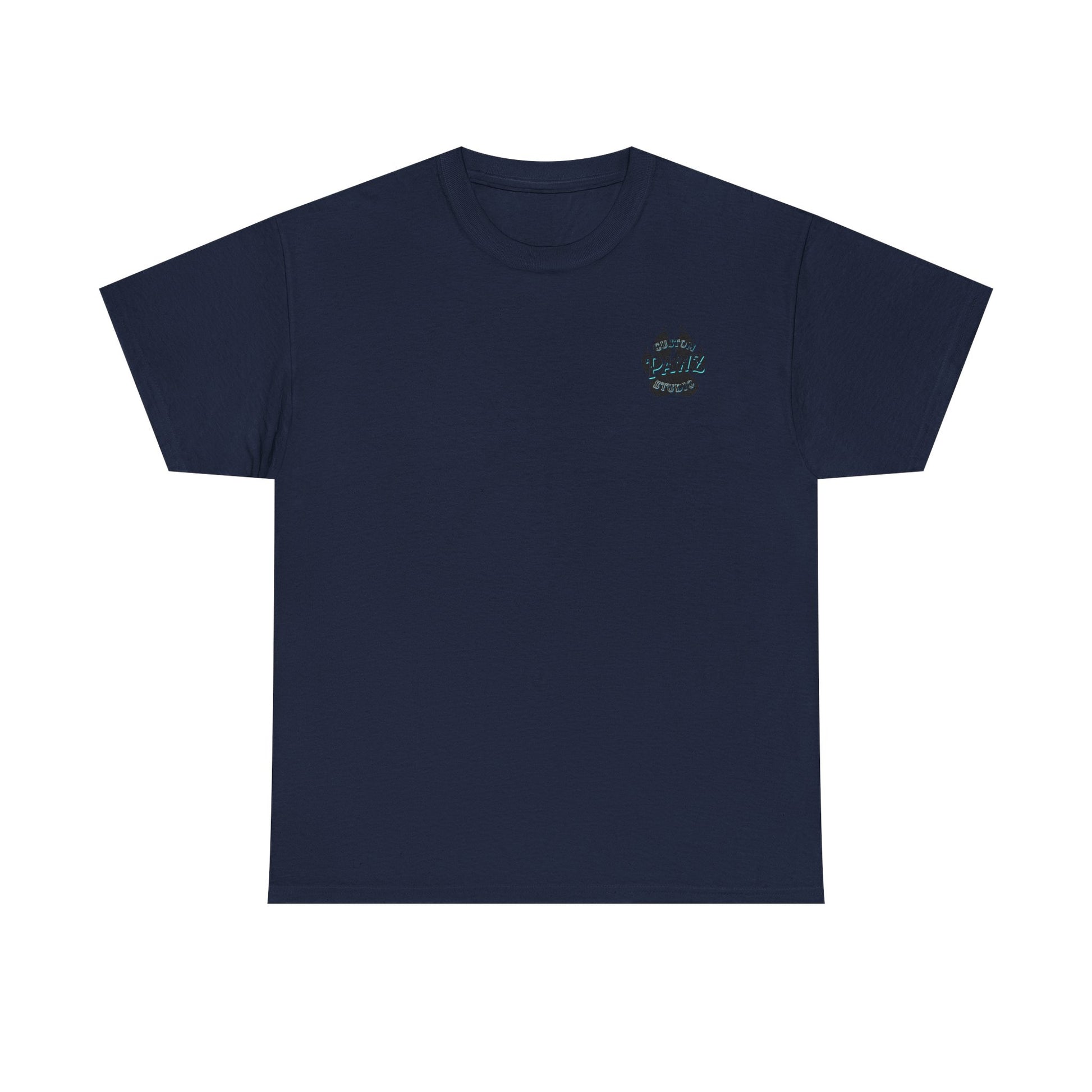 This navy cotton tee brings bold, seaside energy to everyday wear. The front bears a small, subtle crest while the back bursts with a colorful, tattoo-inspired ocean scene — sharks, rolling waves, and vintage surf motifs rendered in rich, layered inks. The shirt feels sturdy yet breathable: a medium-weight knit that holds its shape and keeps printed details crisp. Wear it to town, to the beach, or around friends who appreciate hand-drawn, marine-inspired art. The fit is relaxed and classic, letting the artwork speak while staying comfortable all day.